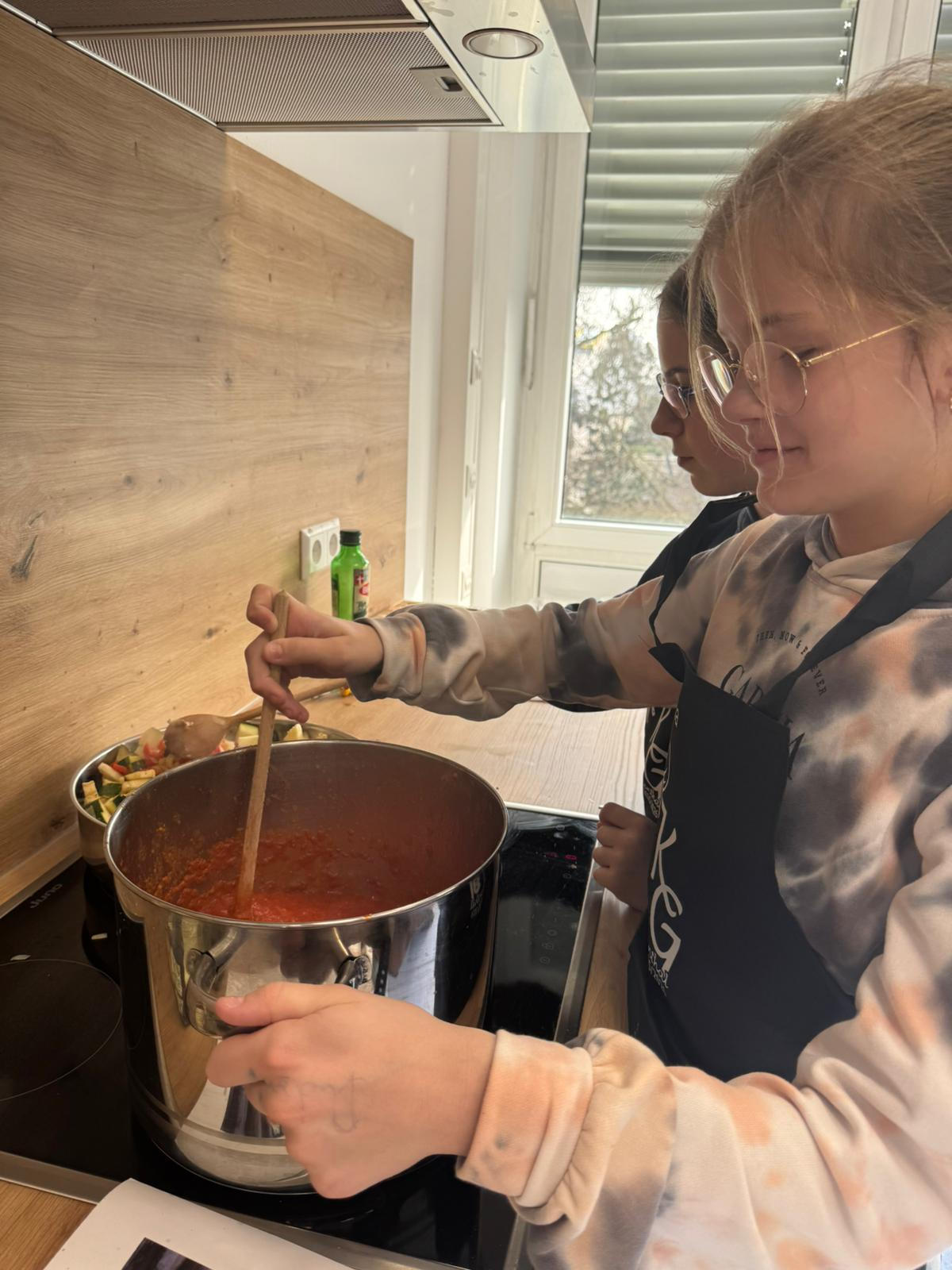 Diesmal kochten wir eine klassische Tomatensoße in drei Variationen -pur, als Bolognese- und als Gemüsesoße. Dazu gab es natürlich Nudeln und auch ein Nachtisch durfte nicht fehlen. Dafür bereiteten wir Raffello Cupcakes vor.